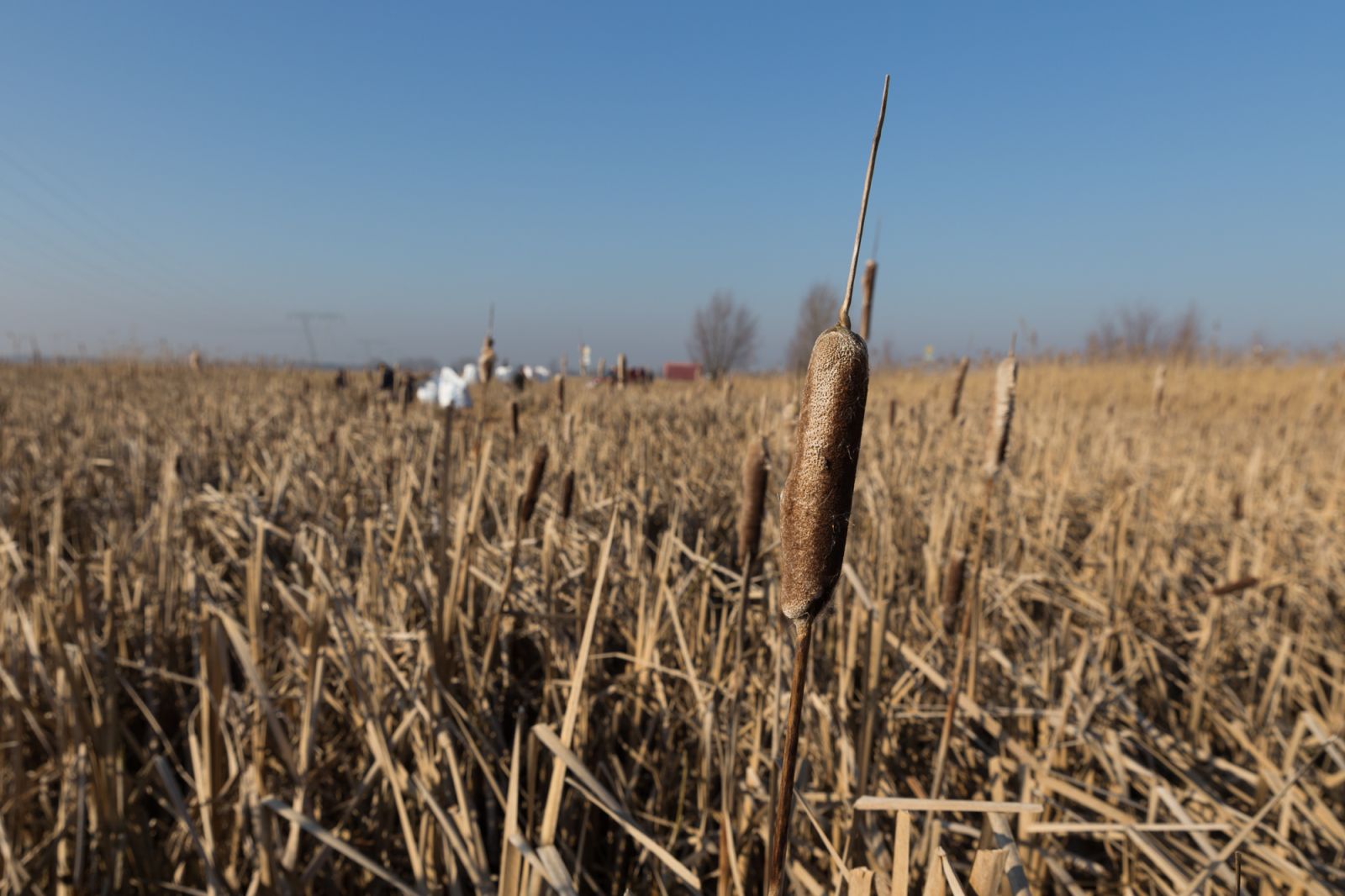 With the support of the Greifswald Moor Centrum, the artist harvested cattails near Neukalen in Mecklenburg-Vorpommern in autumn 2024. With the help of the Leibniz Institute for Agricultural Engineering and Bioeconomy (ATB) in Potsdam, the plant fibres were processed into a loose mass of seed hairs. At Saxon Textile Research Institute in Chemnitz, Hengst and his colleagues conducted further processing and functionalisation tests on the resilience, durability, fire safety and sterilisation of the fibres. Thanks to his newly acquired knowledge of technical processes in textile manufacturing and the technical terms he learned, the artist discovered that efforts were being made to process cattails on a large scale in Germany until the 1930s and that many patents had even been filed for their processing. The project has since also been exploring these historical methods.